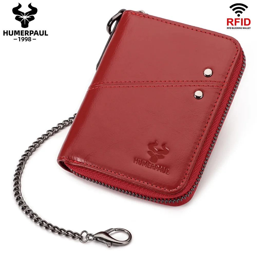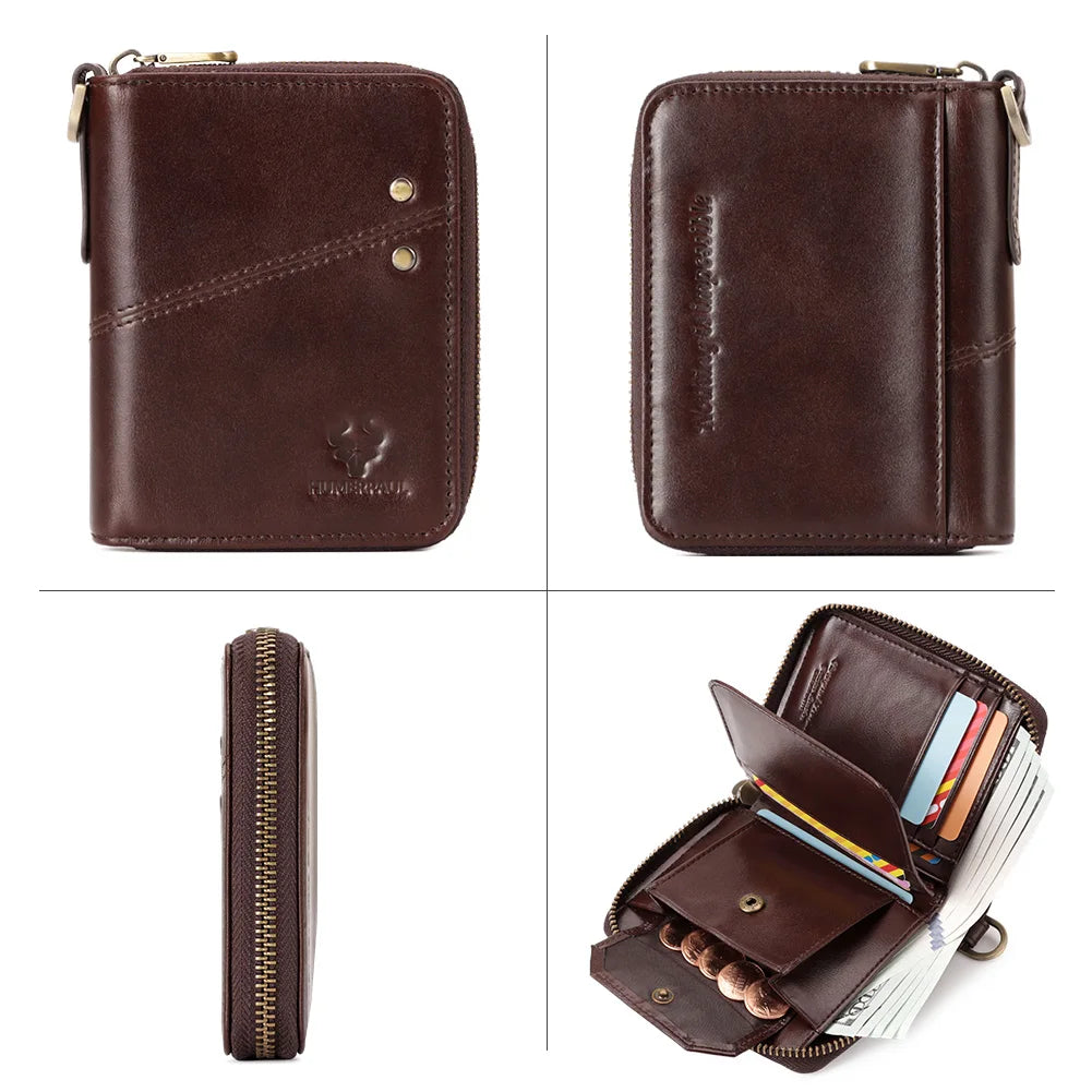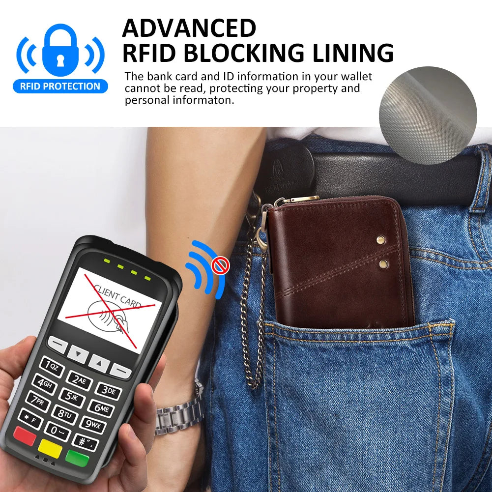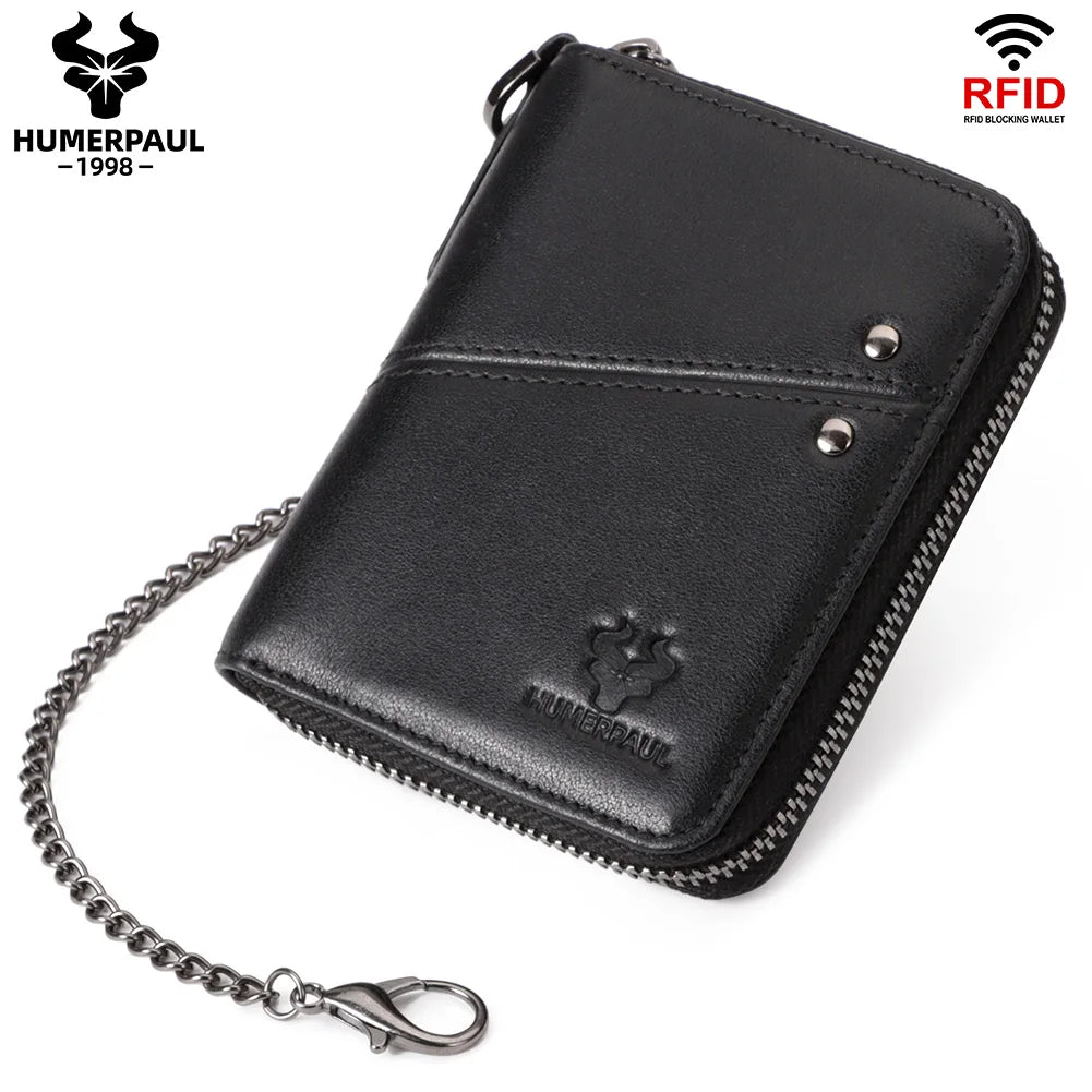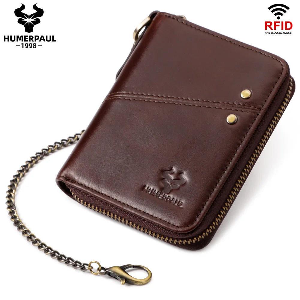 Genuine Leather Men's Wallet With Anti-theft Chain