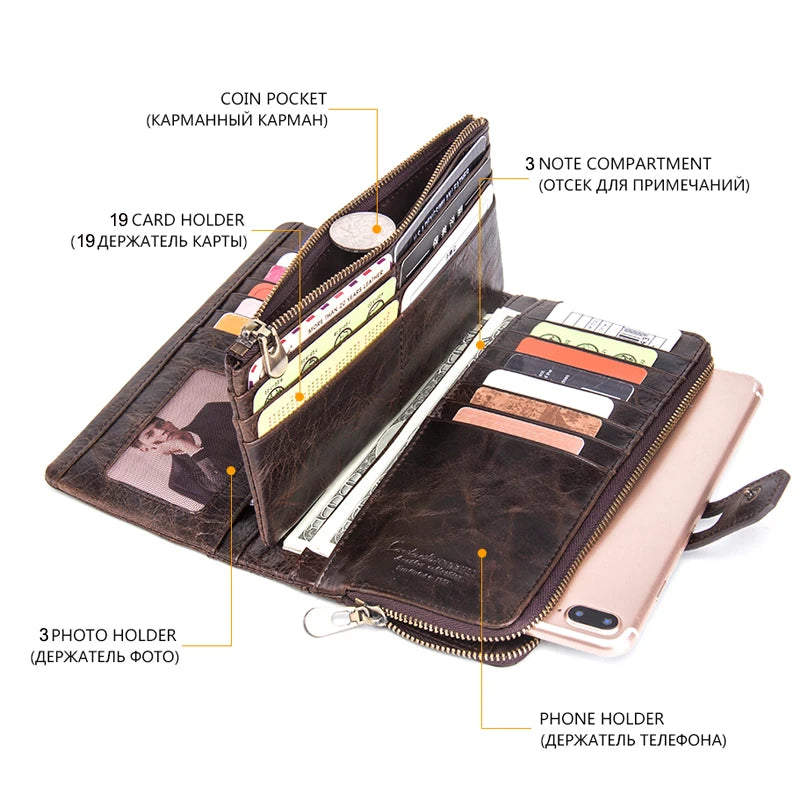 Interior: Photo Holder, Interior Zipper Pocket, Cell Phone Pocket, Zipper Pouch, Coin Pocket, Interior Compartment, Interior Slot Pocket, Note Compartment, Card Holder