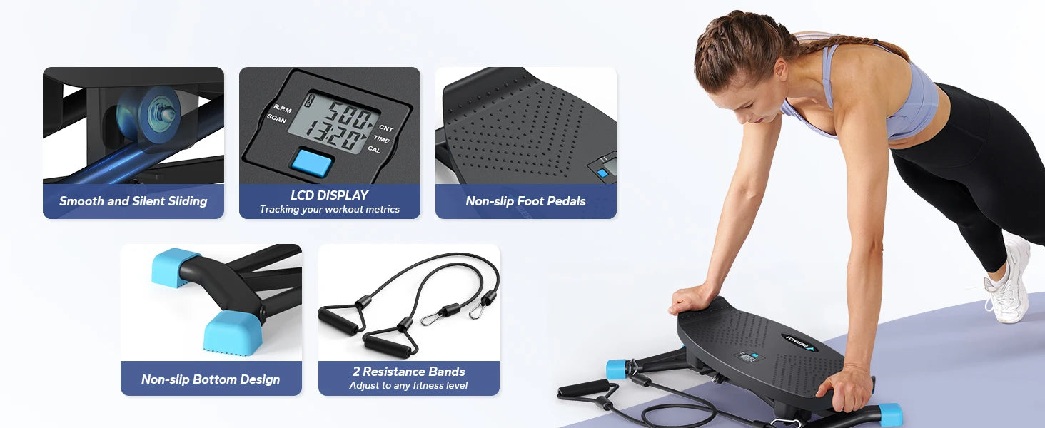 【Full-Body Workout】Standing on the ski machine and sliding side-to-side provides an excellent leg workout. When paired with resistance bands, it delivers a comprehensive full-body exercise. For an extra challenge, use your hands on the machine to mimic a plank position then perform side-to-side movements. All this helps you achieve a toned and sculpted physique.